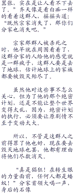 “羽泉,你太过懦弱了,以我们的力量,早就可以去地球上将那群人完全毁灭掉,可笑你根本不理解先祖的遗言,竟然还可笑的要守护那个失败的世界,既然你不动手,那就由我们来动手吧!等消灭了你们,下一个目标就是地球!”分家首领冷笑一声道。