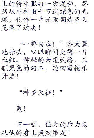 分家首领哈哈大笑:“不管怎样,今天你们必亡!连家族的至宝转生眼都已在我们手中,你们又能有什么胜算?”