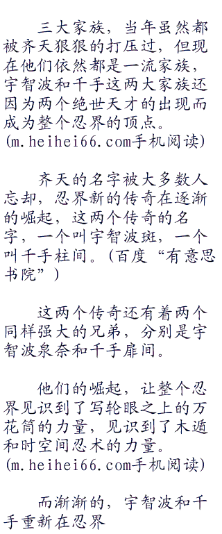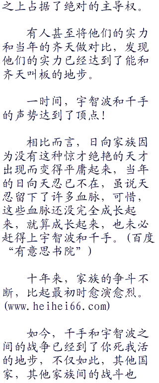 时间永远是治愈伤口最好的良药,十年时间,宇智波和千手已经发展得比当初更加壮大,日向家族也已经恢复了大半元气。
