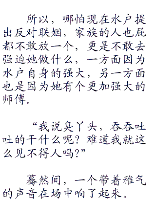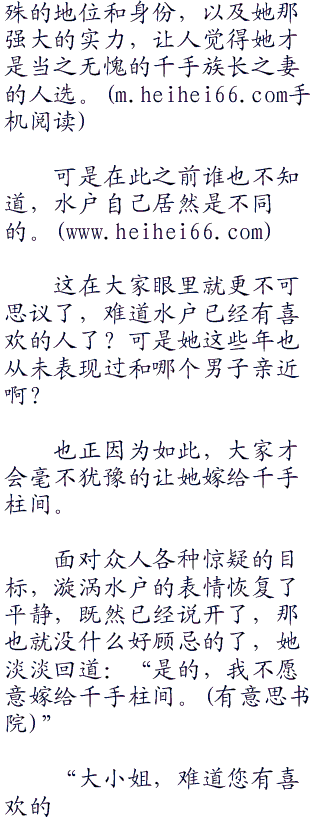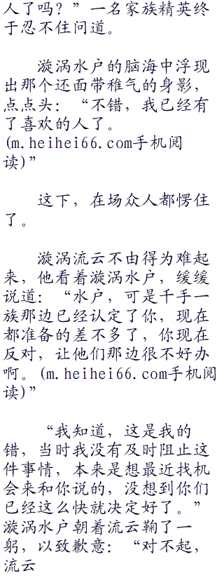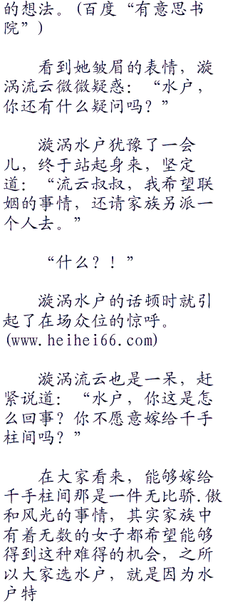 而嫁给千手一族的族长,这在漩涡流云看来是一种巩固水户身份地位的办法,若是她有着千手一族族长之妻的身份,那么今后在漩涡一族中,还是谁也不能小看。