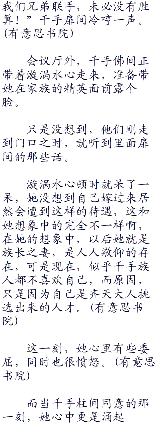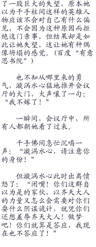 “族长,那家伙简直就是在羞辱我们!他以为我们千手一族是什么?是可以随便指手画脚的吗?您的妻子应该由您自己来决定,而不是他随意给您指定!”会议刚开始,就已经有人表达出了强烈的不满。