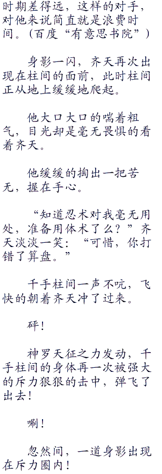 而现在,在面对齐天这种会时空忍术的强者,他的速度才是致胜的关键!