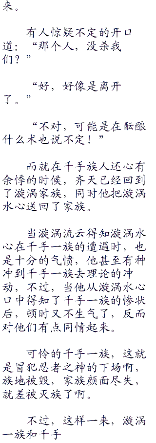 漩涡水心还有些发懵,因为她之前被齐天送到了一个很奇怪的地方,然后还没搞清楚那个地方到底是哪里的时候,又突然出现在这里了。