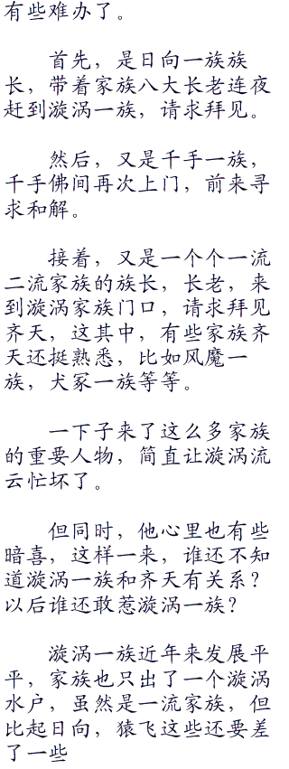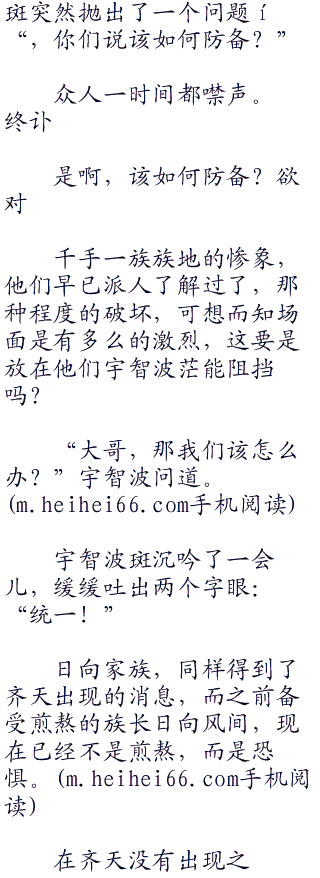 “族长,人都到齐了,可以开始了。”一个声音打断了斑的思绪,斑回过神来,这才惊觉会议厅的人都已经入座,等待着他开口说话。