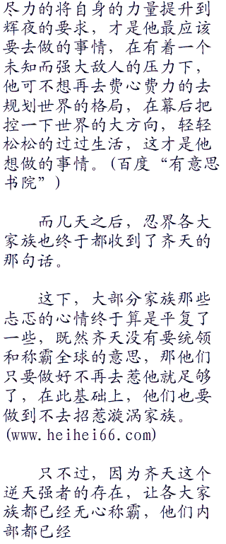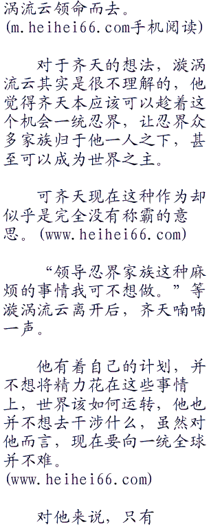 齐天并不想参与这些事情,他只回了一句话:“都滚回去,该干什么干什么,谁再来烦他,他就要真的去灭了他们。”