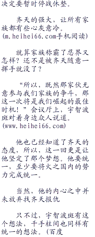 对此,齐天又让漩涡流云带了句话给他:“千手一族只要别再来惹他,他就不会去灭他们。”