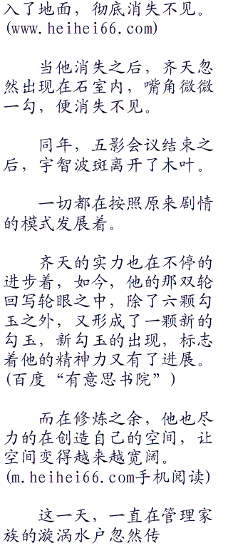 当宇智波斑离开密室之后,一个浑身漆黑的身影悄悄的出现在石碑面前,他低声的喃喃自语:“宇智波斑啊,千万别让我失望了,你可是我选中的人呢,我可不想再经历失败了哼哼哼,那个混蛋,总有一天,我要将你踩在脚下,总有一天,我会得到我想要的一切!”