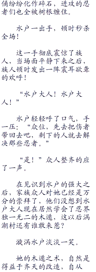 “这些家伙用一般忍术无法消灭,必须要有杀伤性强的b级忍术或是a级忍术才行!”有人叫了起来。