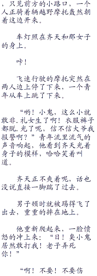 “啊,是个可爱的男孩子呢!”那女声继续轻呼道:“这么晚了,你怎么一个人在这里啊?为什么都不穿衣服啊?”