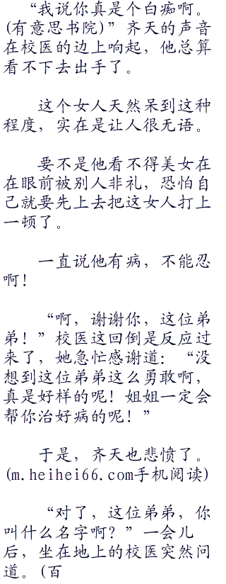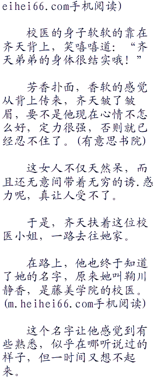“哦,原来这位小姐是藤美学院的校医啊!”青年男子邪笑道:“不过我现在就很不舒服呢,医生小姐可否为我解决一下呢?”