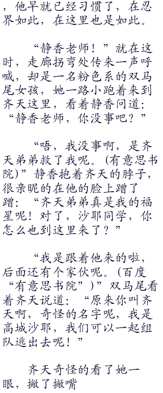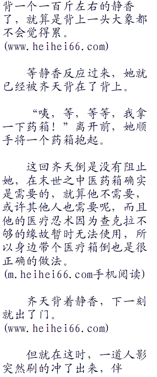 齐天无语,幸好能碰到自己,否则以她这种身体条件,没人保护绝对会是第一个死。