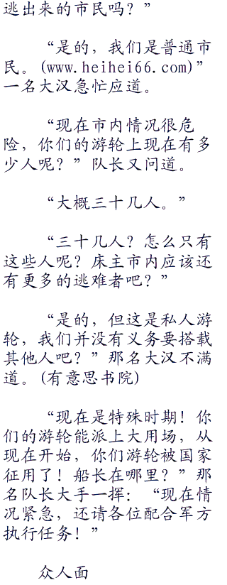 因为护卫舰的喇叭声,游轮上的人都被惊动了,本来在休息的伢子她们也都来到了甲板上。
