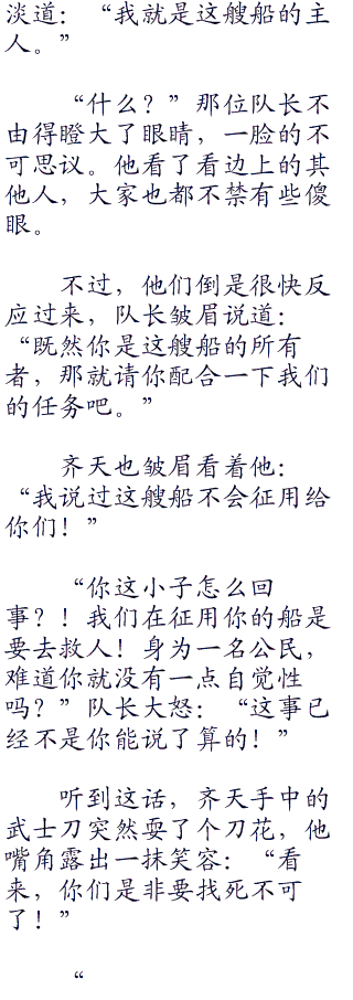 然而,就在游轮刚刚驶出港口,准备离开床主市的时候,前方不远处突然有一艘巨大的护卫舰挡在了前面。