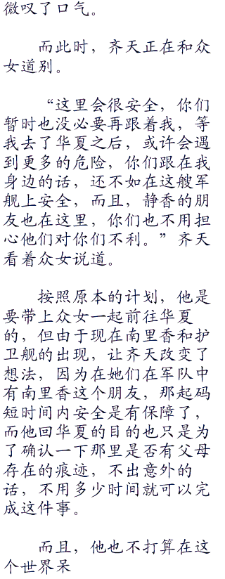 齐天停在南里香面前,笑道:“如果不是因为你是静香的朋友的话,你也已经下去游泳了。”