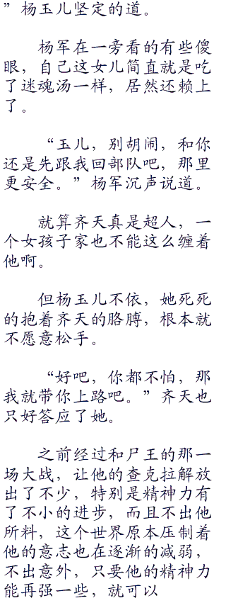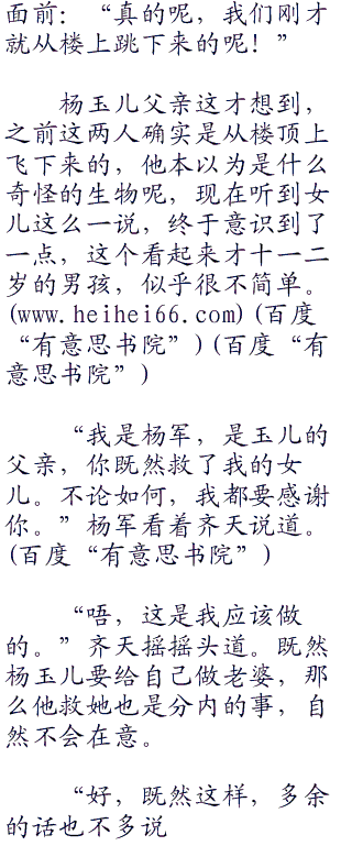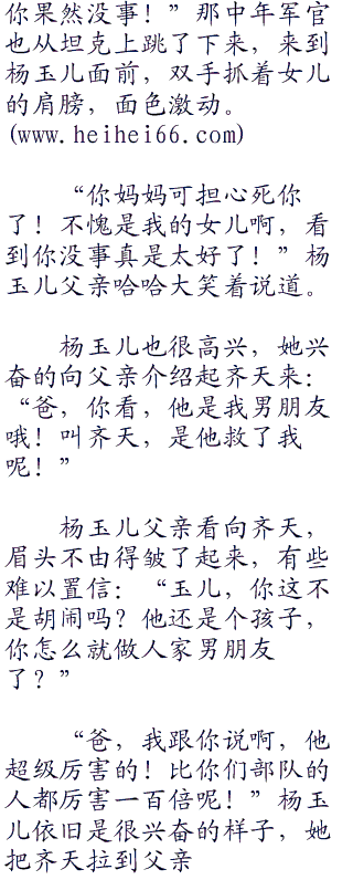 “哦?你爸居然是当兵的?”齐天倒是有些惊讶,这杨玉儿原来还是有很大的后台的啊。他一边说着就从楼顶上跳了下去。