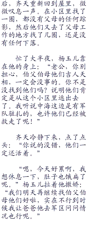 齐天抱着杨玉儿一路飞奔,天黑之前,他终于到达了中海市。