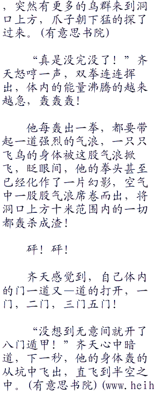 齐天意识到一件很严重的事情,病毒似乎已经完全扩散到了动物界,刚才的海蟒和螃蟹,以及现在的这群飞鸟,一看就是被病毒感染的群体,否则它们绝不会如此的来势凶猛气势汹汹。