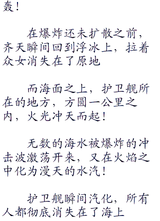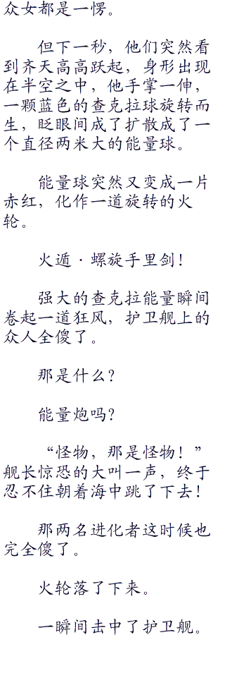 而在另一边,齐天已经从海面上一跃跳上了护卫舰。