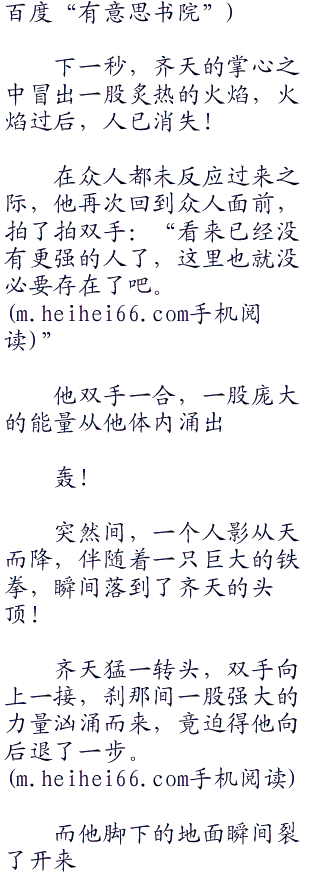 以前的齐天虽然很强,但那时候她也只认为齐天是一个极强的剑客,可是现在的齐天所表现出来的力量已经不是剑客那么简单了,他这完全是非人类啊!