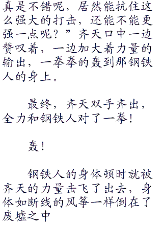 齐天的身体简直就像是一尊战神,所到之处人仰马翻,进化者们一个个的倒飞出去,完全就是一面倒。