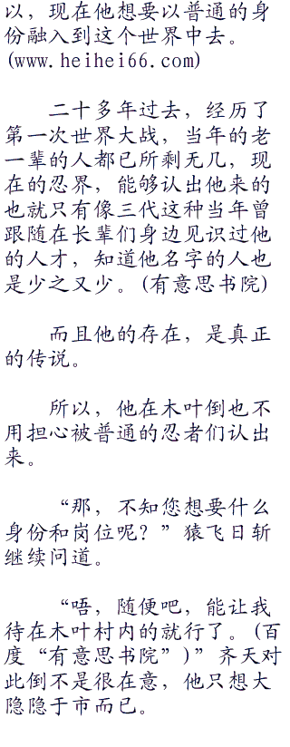 猿飞日斩急忙低下头,长长的叹了口气:“是,我知道了,齐天大人。”