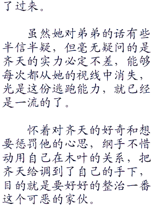 当然,齐天对此是不会在意的,他现在倒闲着无聊呢,纲手既然愿意给他找事陪他玩,那他也是求之不得的。