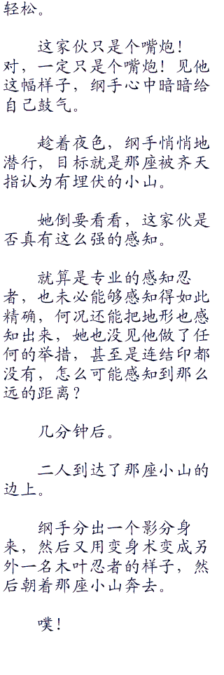 “各位,小心了,这里是河之国和火之国的边境,敌方势力很有可能会在这里布置埋伏。”纲手在一处树林里停了下来,对身边众人说道。
