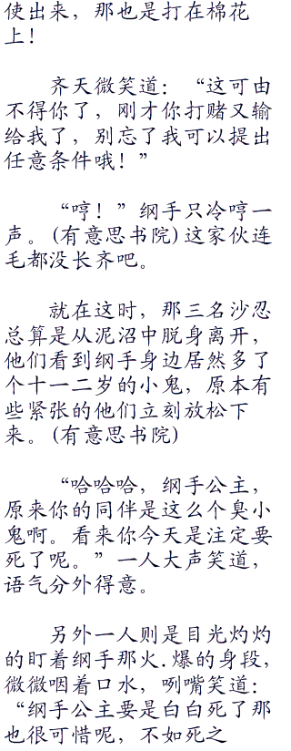 “我不是你女人!也不会做你这种臭小鬼的女人!”纲手咬牙道。她感觉自己的牙齿都要咬碎了,但是齐天那副完全不在乎甚至是风轻云淡的样子,实在是让她有种有力无处使的感觉,不,就算是