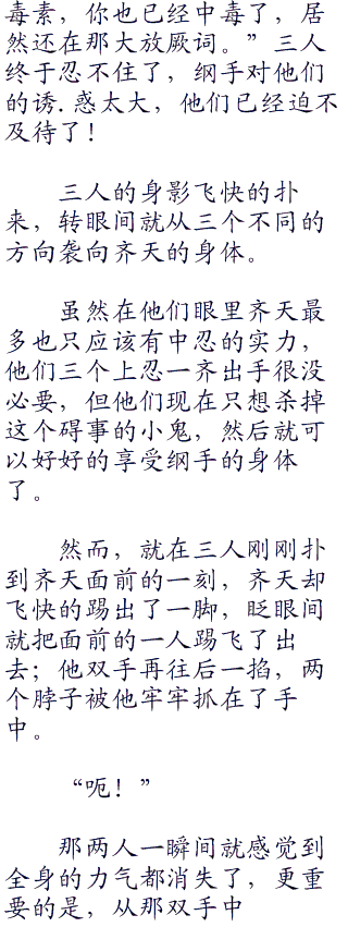 要不是现在她体力不支,被毒素缠住,恐怕早就要打死这个敢如此非礼她的家伙了。