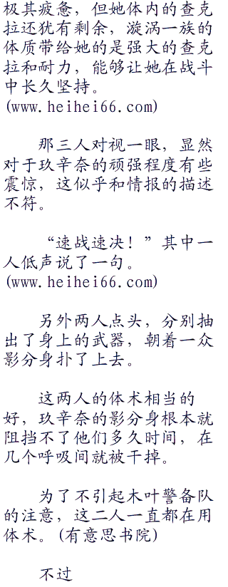 这三人都是蒙头蒙面,完全看不清他们的面孔,而他们更是二话不说就朝着玖辛奈扑了过去。