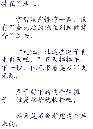 他们没想到齐天已经强到了这种程度,一切的幻术忍术体术在他面前,竟然完全不起作用!