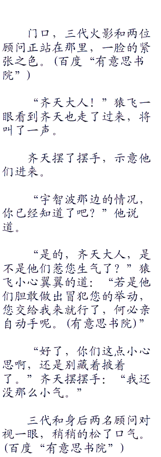 对他来说,整个宇智波一族也只不过是一群蚂蚁而已,不过美琴并不在这之列,作为他的学生,这些天的相处也让他对这个安静柔弱却又坚强的女孩子很有好感,所以,当美琴求他的时候,他选择了放宇智波岩这只蝼蚁一条性命。