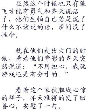 轻轻拍了拍她的脑袋,齐天说道:“这些事要说来可就不是一时半会儿就能结束的了,还是等以后有机会再告诉你吧。”