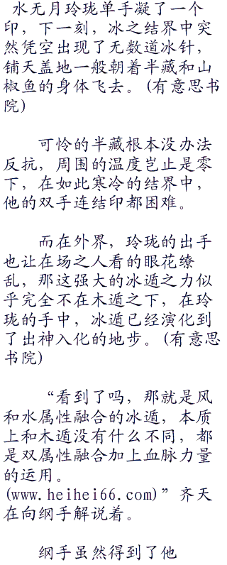 而原本在这种封闭的空间内,对山椒鱼放毒是十分有利的可是在这超低的温度之下,连山椒鱼的毒素都被冻结成冰渣,完全无法奏效。