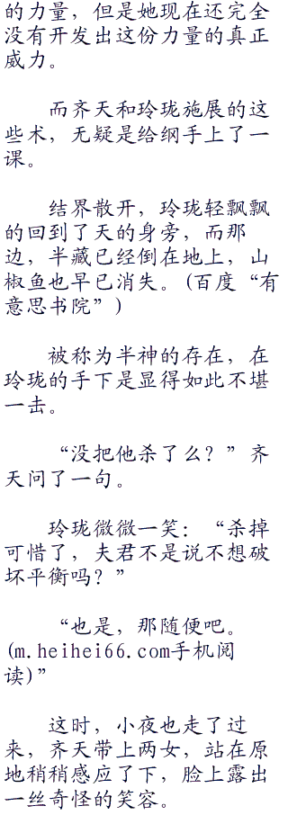 她知道碍于齐天的关系,半藏心有顾忌,根本无法施展,但是她好不容易有个对手玩玩,自然是不想就这样结束的。