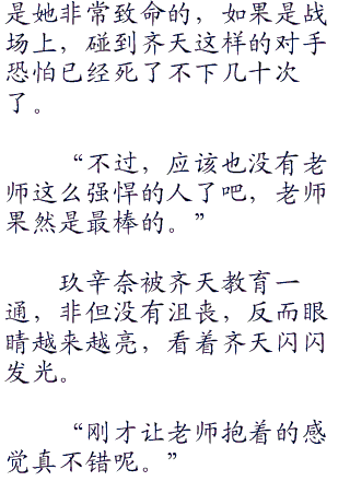 玖辛奈小脸涨得通红,她十分敬重齐天,自然看重齐天对她的评价。