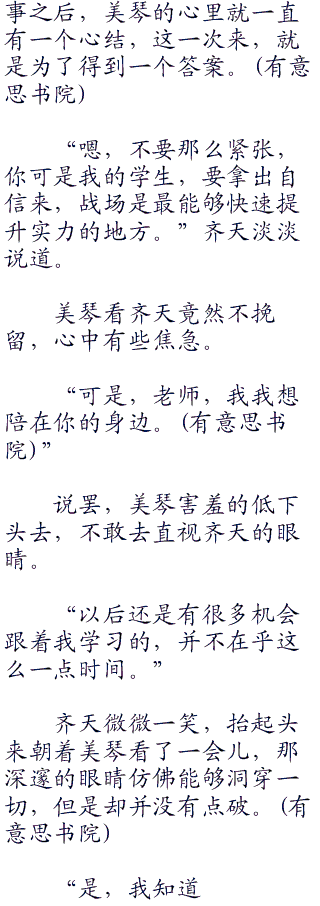 连能够看破一切的齐天都感觉有些奇妙,难道这小丫头有受虐的倾向?