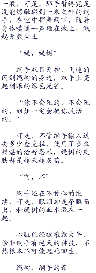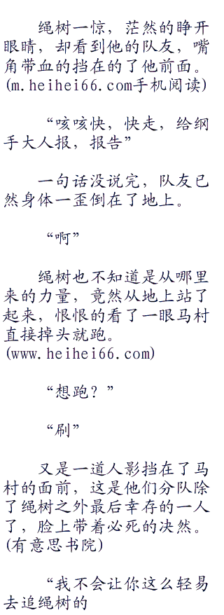 马村瞥了一眼倒栽地上的绳树,风刃再次凝聚,而这一次,他瞄准的正是绳树的脖颈,小狼和队长的惨剧也要降临到绳树的身上了。