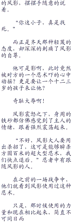 “大家小心点,敌人来了。”风影一声大喝,身后的忍者这才反应过来。