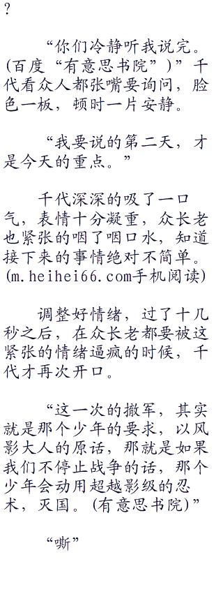 “千代长老,你这么说,是否已经掌握到什么情报了呢?我们作为长老团,应该是有权利知晓的吧。”那个一开始说话的长老,满眼好奇的问道。