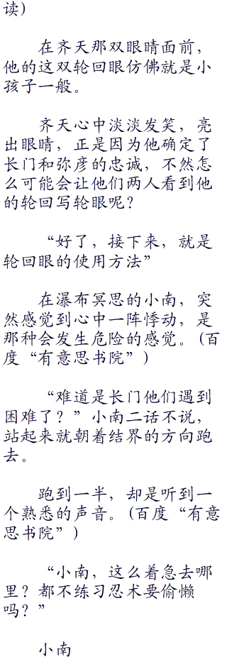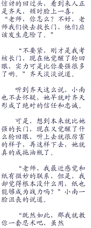 齐天再次消失,一旁的长门想要拦住齐天,可是齐天那诡异的手段让他根本无从下手,只能跟着齐天的残影到处乱窜。