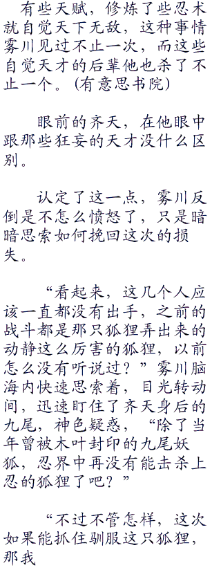 这样的国家支柱力量,一转眼之间就失去了四分之一,身为川隐村长老的雾川痛得心中滴血。