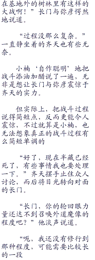 外界的流言与猜测,各国势力的暗中调查在半藏神秘失踪后愈演愈烈,不过这些都是一段时间以后的情况了,齐天并不关心这些后续的发展。