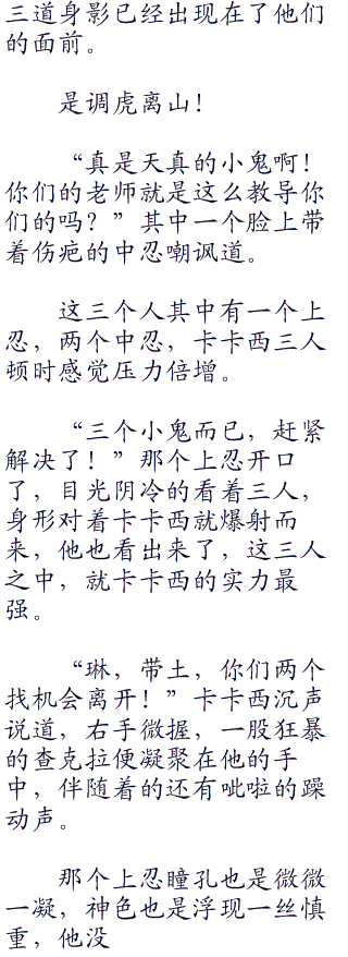 数道破空声音传来,直接朝着二人袭来,就连是他们的同胞的上忍也完全在他们的击杀目标之中,很明显,他们并不想让活口落入水门的手中。