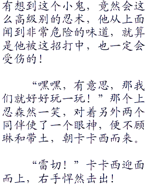 猛烈的爆炸,将这个参天大树炸的支离破碎,带着这个最后捕捉到的身影,这位沙隐的上忍就这样死去。