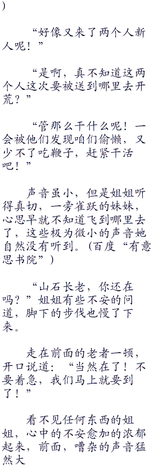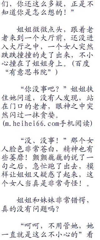“好啊、好啊!我们赶紧去吧!”妹妹急忙拉着有些狐疑的姐姐跟上了前面的老者,小声的说道“姐姐你真是的,别人欢迎我