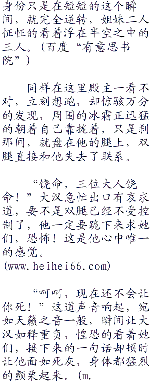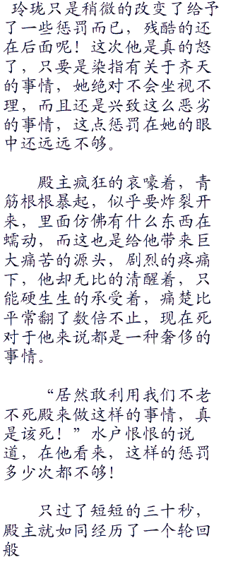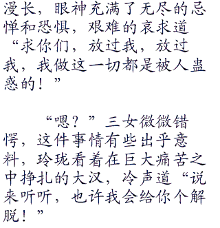 次日,两姐妹来到这里的第二天,她们已经完全了解了这个不老不死殿点,但是现在她们已经没有办法离开这里,她们已经被奴役在了这里,周围到处都是凶神恶煞的大汉。