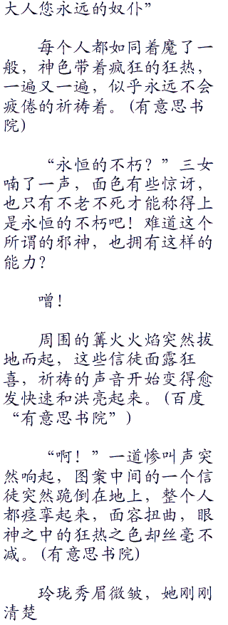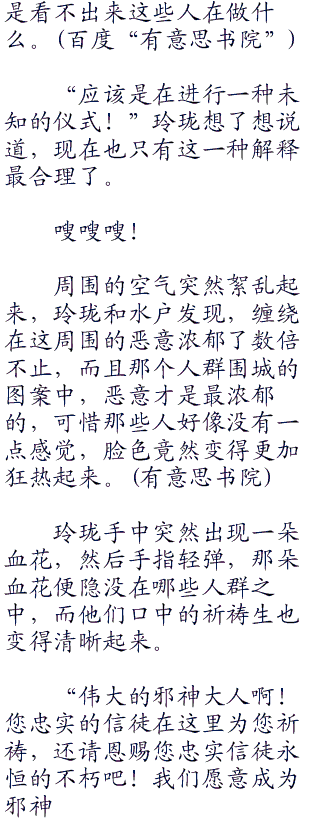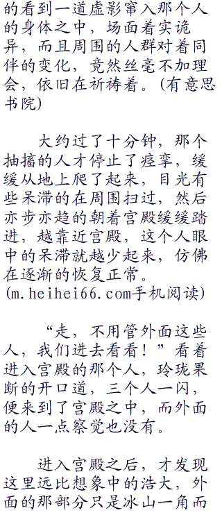 玲珑仔细的看着这一切,细心的她也发现,这数十个人恰好组成一个奇异的图案,外面是一个圆圈,而圆圈里面则是一个三角,他们不断的对着面前的宫殿跪拜,然后祈祷,场面充满了诡异。