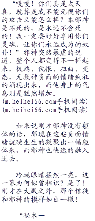 玲珑特看出了水户的异状,虽然知道自己攻击十有**会落空,但还是出手来对付邪神。