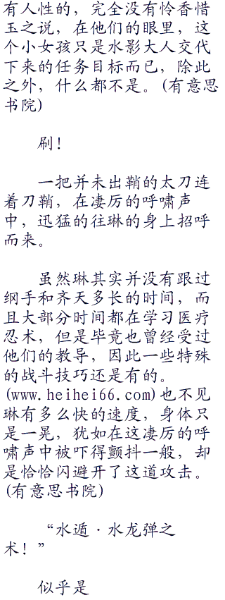 雾忍并不答话。这个时期的雾忍村正是最残酷的,因此雾忍暗部也是最没